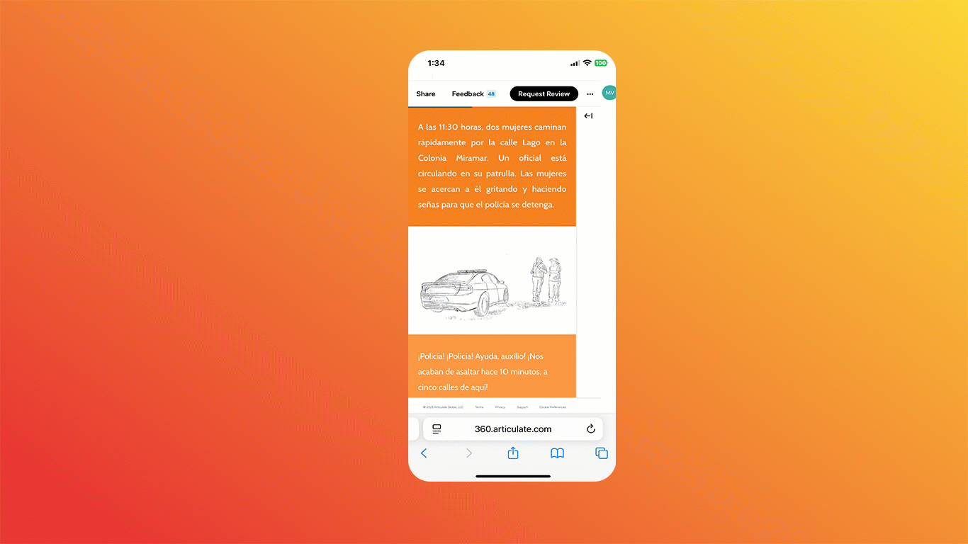 An intergovernmental agency needed to adapt their in-person training sessions into a mobile-friendly online format. The course was targeted at police officers. They would mainly use their phones, and often in areas with poor internet. As an alternative, the trainees could access the course from computers provided by a training center. So, the final solution should work on both phones and computers. The challenge was to transform instructor-led PowerPoint presentations into an engaging and practical mobile learning experience that could meet the unique needs of the target audience.