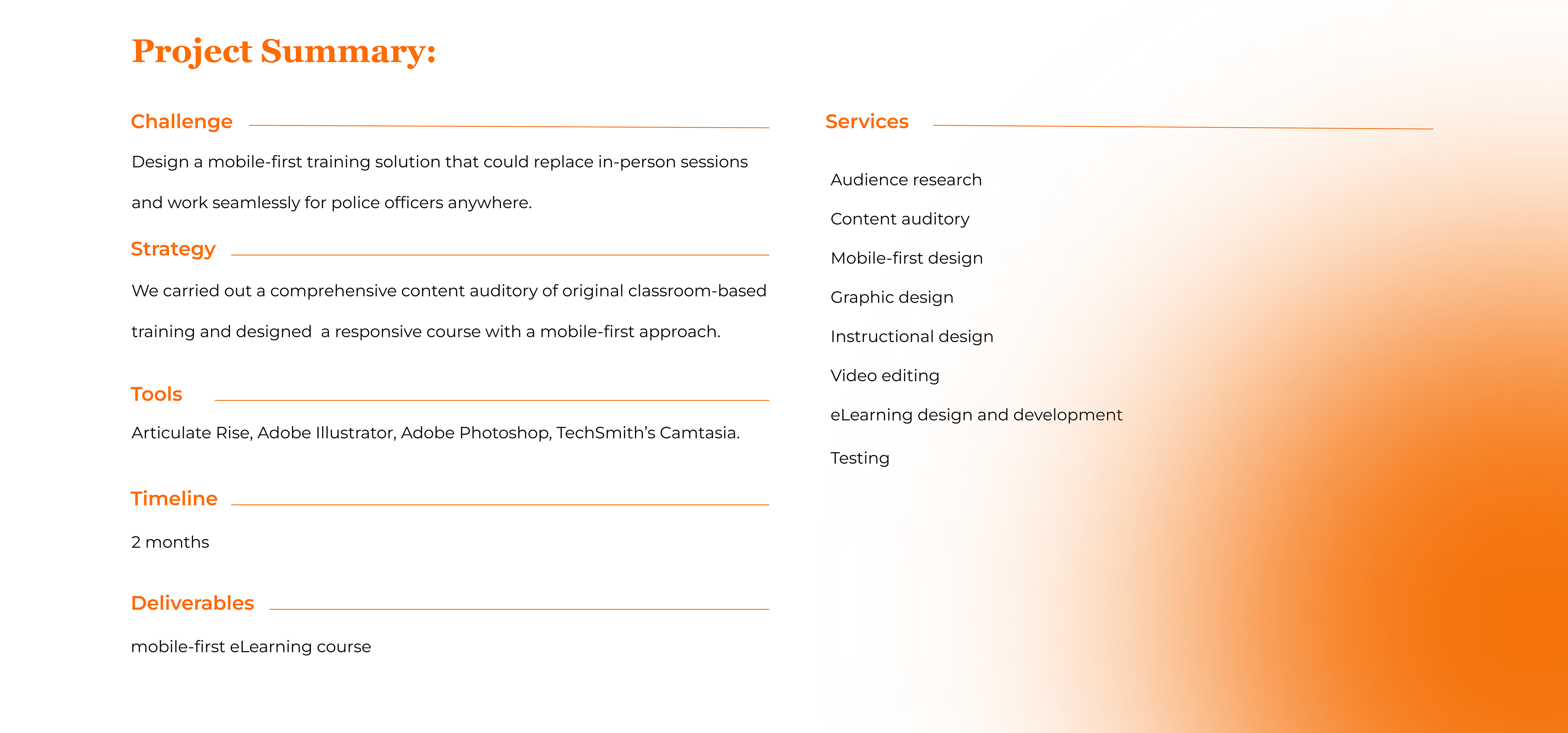 The final product was a mobile-optimized course that: